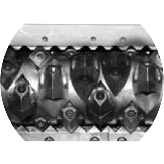此刀輥是針對ABS.PC.尼龍等堅硬材料進行特殊設計。刀具沉入較深,單次切料較少,減少沖擊,同時降低噪音。